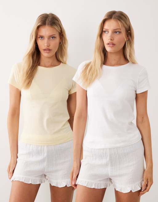 ASOS DESIGN 2 pack pajama T-shirts in white & lemon