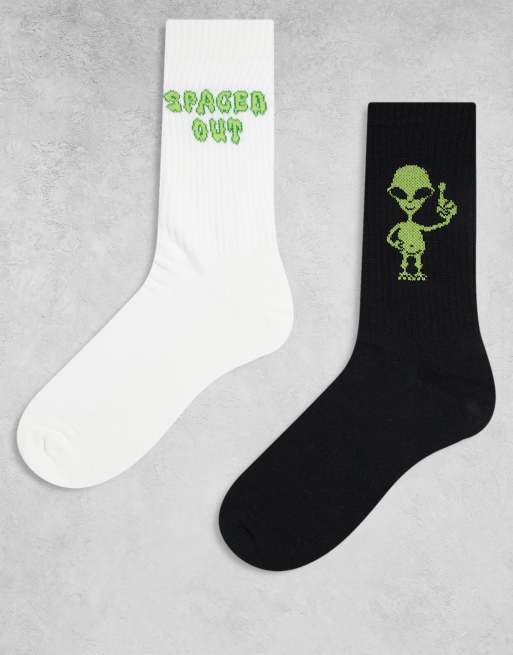 ASOS DESIGN 2 pack socks with alien graphics in multi