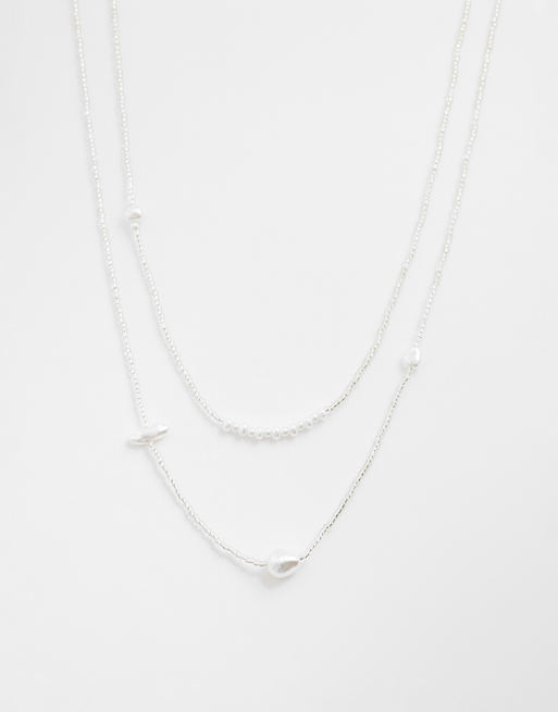 ASOS DESIGN 2 pack stationed faux pearl necklace in white
