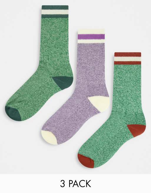 ASOS DESIGN 3 pack boot socks in green and purple heather