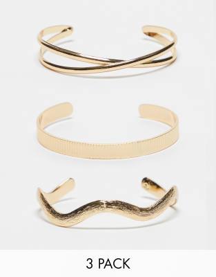 ASOS DESIGN 3-pack cuff bracelets with mixed designs in gold tone
