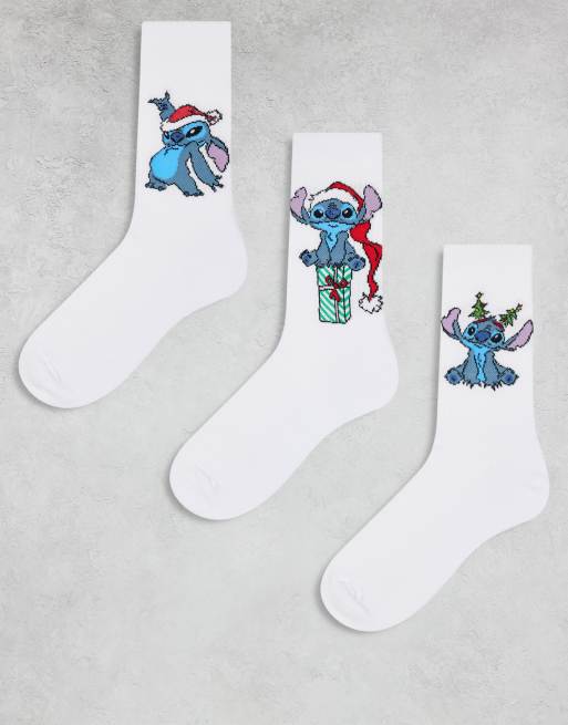 ASOS DESIGN 3 pack Disney christmas Stitch socks in ecru