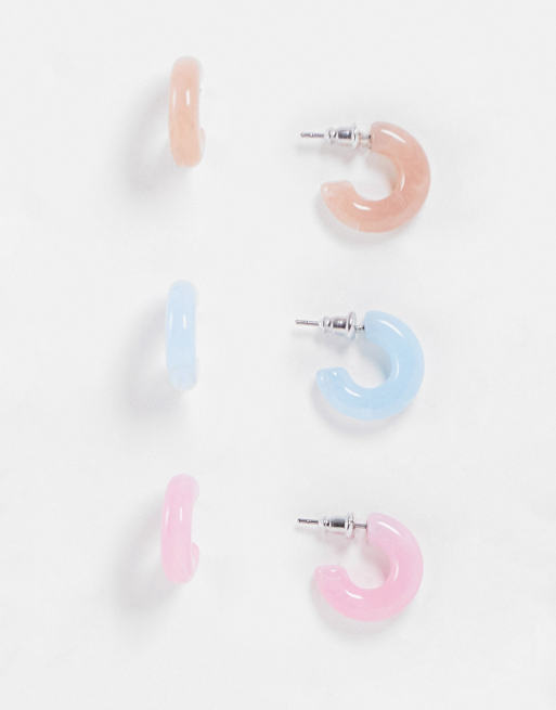 ASOS DESIGN 3-pack hoop earrings in mixed resins