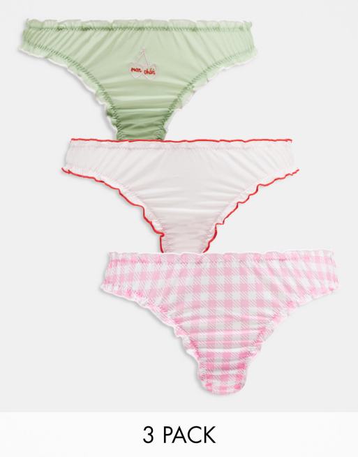 ASOS DESIGN 3 pack mesh scrunch thong in pink, gingham & mint