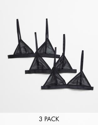 ASOS DESIGN 3 pack mesh triangle bra in black