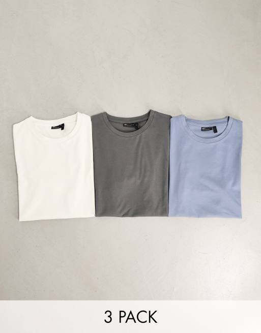 ASOS DESIGN 3 pack muscle fit t-shirt in gray, cream and blue