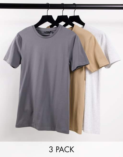 ASOS DESIGN 3 pack muscle fit t-shirt with crew neck in gray, beige and white
