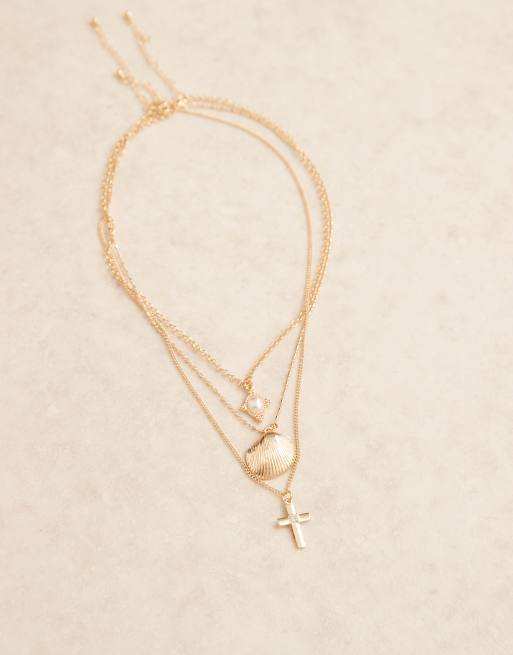 ASOS DESIGN 3 pack necklace with multi pendants in gold