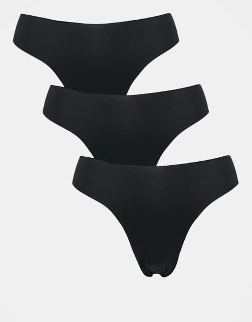 ASOS DESIGN 3 pack no vpl brazilian briefs in black