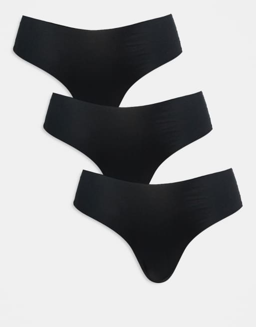 ASOS DESIGN 3 pack no VPL & lace brazilian briefs in black