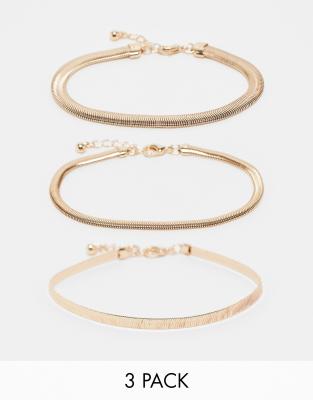 ASOS DESIGN 3 pack snake chain bracelet in gold