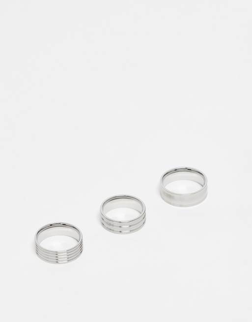 ASOS DESIGN 3 pack stainless steel embossed band rings in brushed silver tone