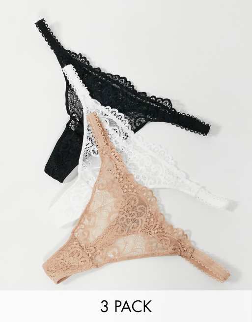 ASOS DESIGN 3 pack thong in lace tanga