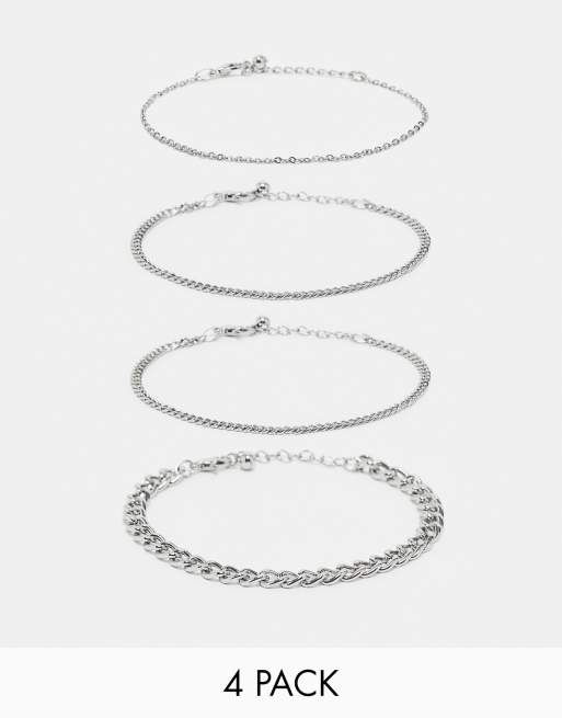 ASOS DESIGN 4 pack chain bracelet set in silver