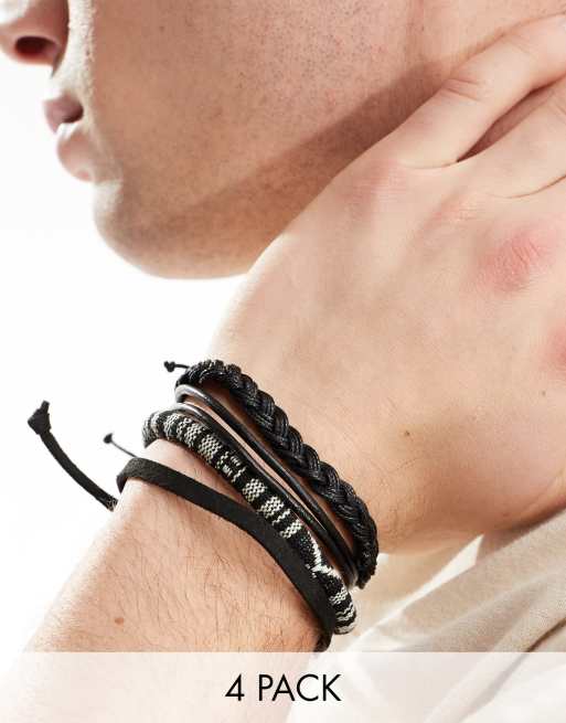 ASOS DESIGN 4-pack leather and woven bracelets in monochrome