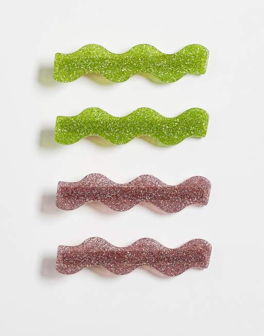 ASOS DESIGN 4-pack sparkle clips in green and pink