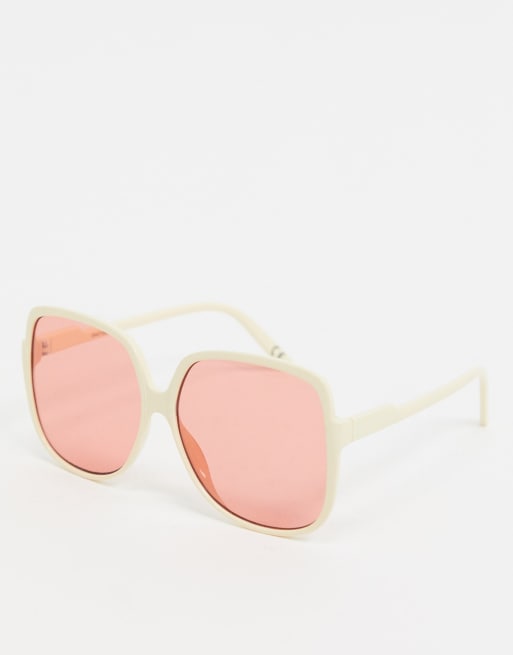 ASOS DESIGN 70s oversized square sunglasses in cream with orange lens