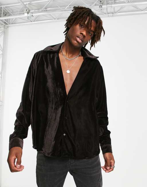 ASOS DESIGN 70s velvet shirt with oversized collar
