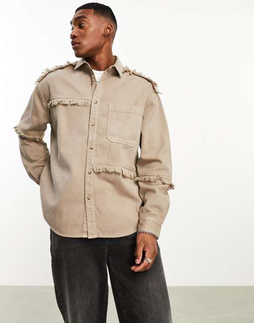 ASOS DESIGN 90s oversized denim shirt with raw edge seams in taupe