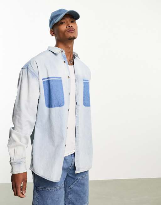 ASOS DESIGN 90s oversized denim shirt with removed pockets in bleach wash