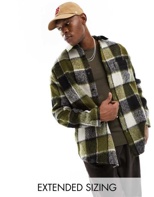 ASOS DESIGN 90s oversized textured wool mix check overshirt in khaki