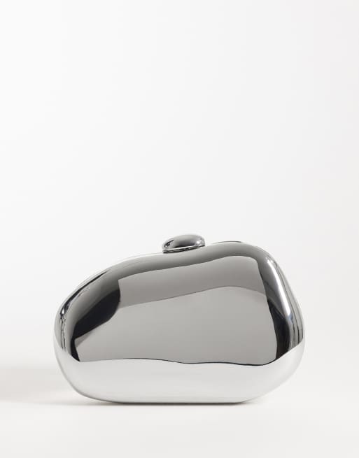 ASOS DESIGN abstract hardbox clutch purse with cross body strap in silver