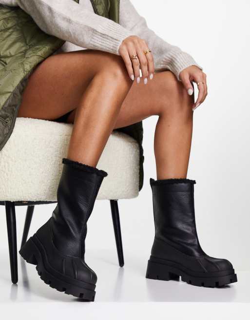 ASOS DESIGN Alice shearling lined pull on boots in black