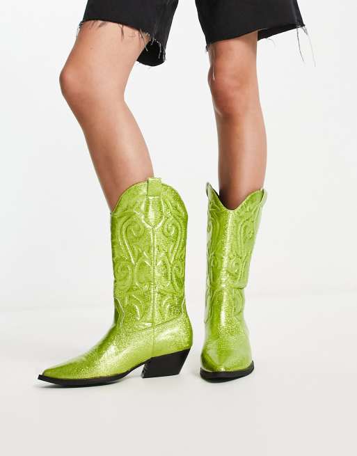 ASOS DESIGN Andi flat western knee boots in green glitter