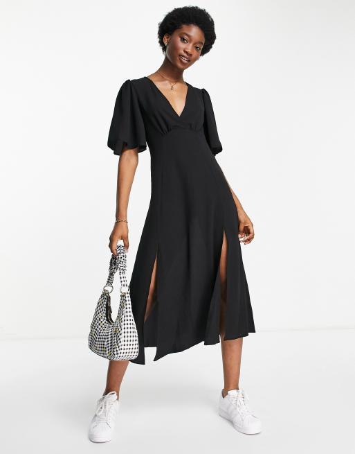 ASOS DESIGN angel sleeve midi dress in black