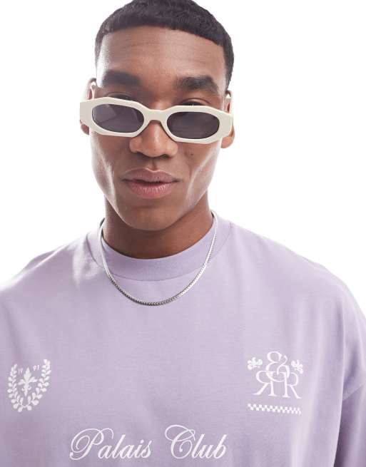 ASOS DESIGN angled sunglasses with ecru frame and smoke lens