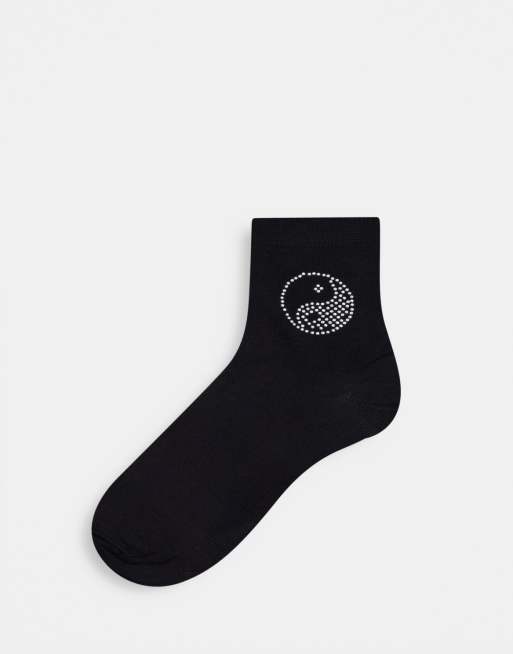 ASOS DESIGN ankle socks with hotfix 90s design in black