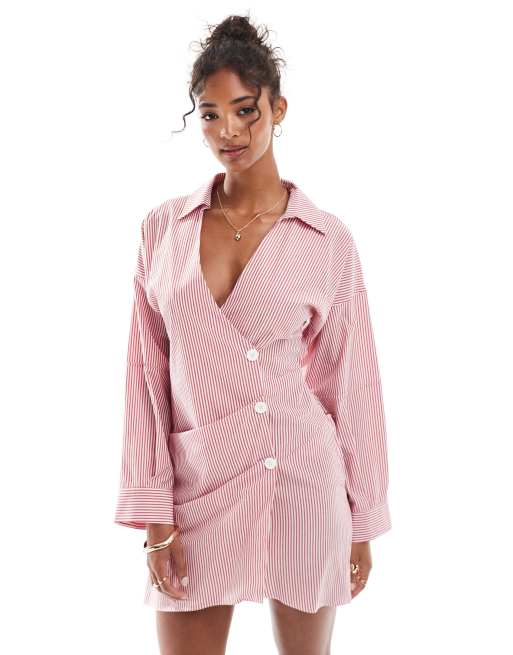 ASOS DESIGN asymmetric half wrap shirt with front button detail in cut about stripe