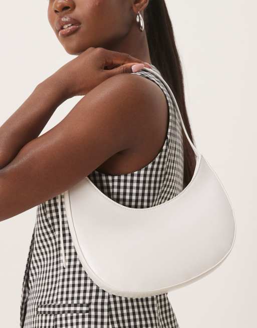 ASOS DESIGN asymmetric scoop shoulder bag with buckle detail in white