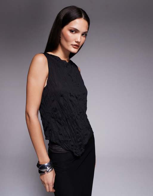 ASOS DESIGN asymmetric sheer crinkle tank top in black