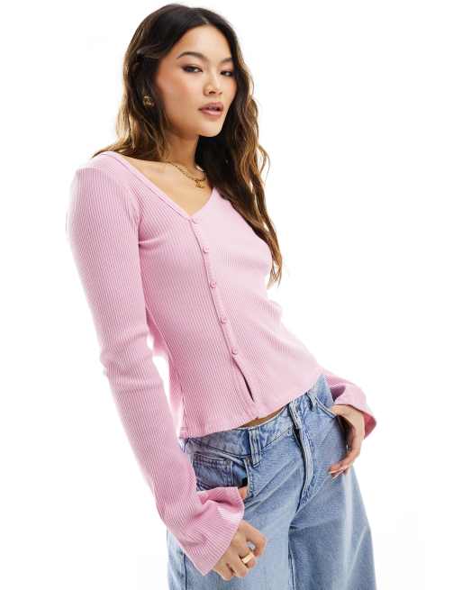 ASOS DESIGN asymmetrical button through top in pink