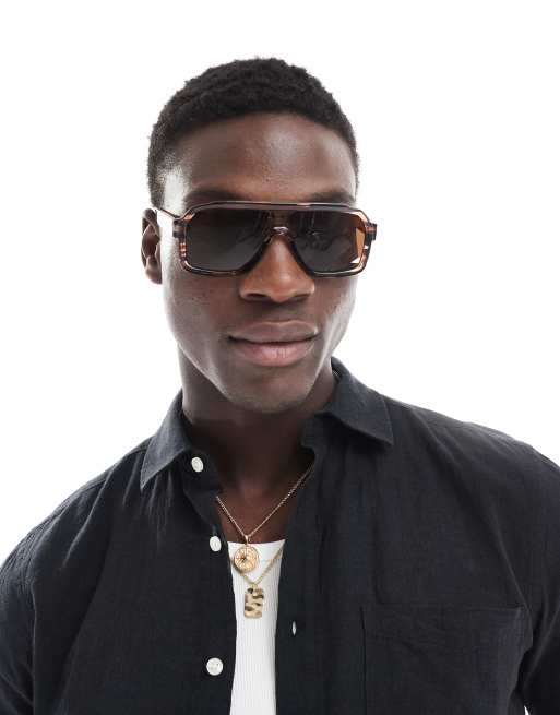 ASOS DESIGN aviator sunglasses in brown horn with brown lenses