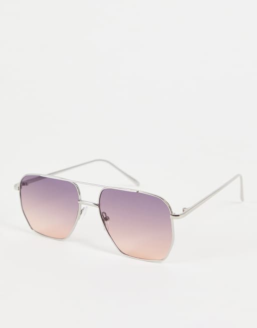 ASOS DESIGN aviator sunglasses in silver with purple and taupe gradient lens