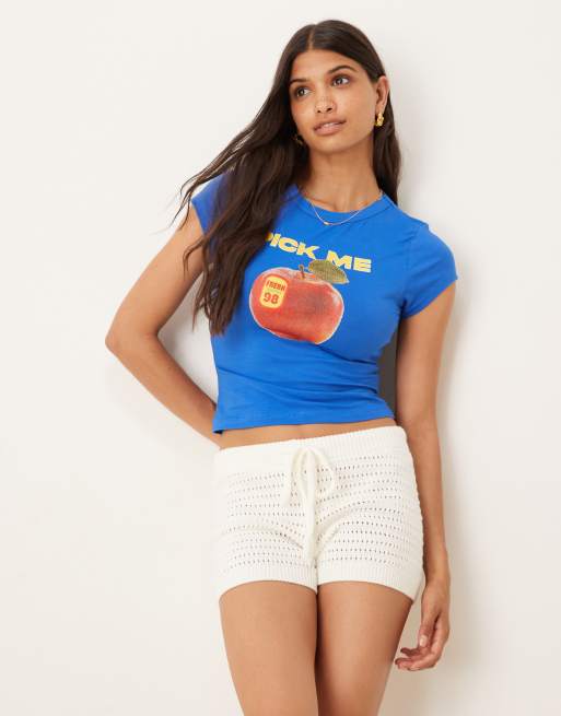ASOS DESIGN baby tee with apple graphic in blue