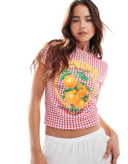 ASOS DESIGN baby tee with florida orange graphic in gingham print