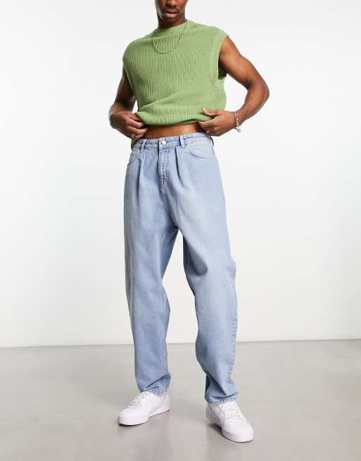 ASOS DESIGN balloon jeans in mid wash blue