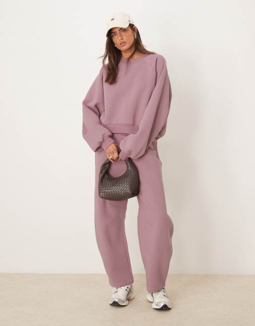 ASOS DESIGN balloon sleeve sweat and sweatpants set in dusky pink
