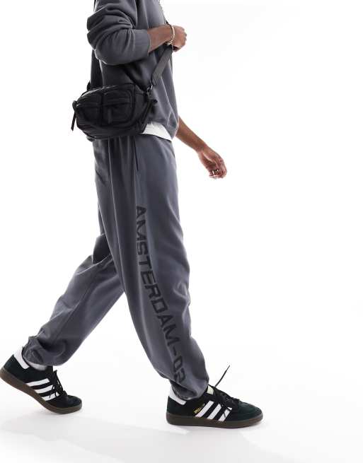 ASOS DESIGN balloon sweatpants in charcoal with Amsterdam print