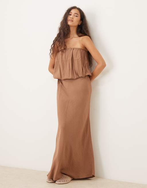 ASOS DESIGN bandeau maxi dress with bubble bodice in brown