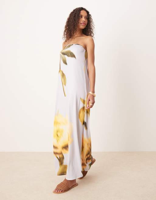 ASOS DESIGN bandeau placement flower maxi dress