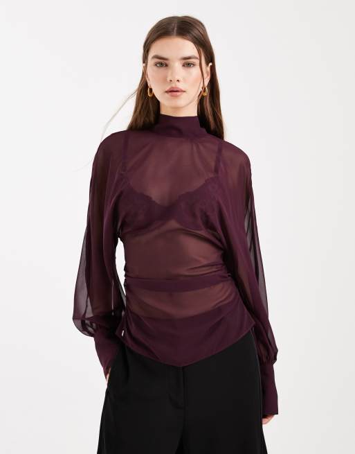 ASOS DESIGN batwing high neck blouse in ecru