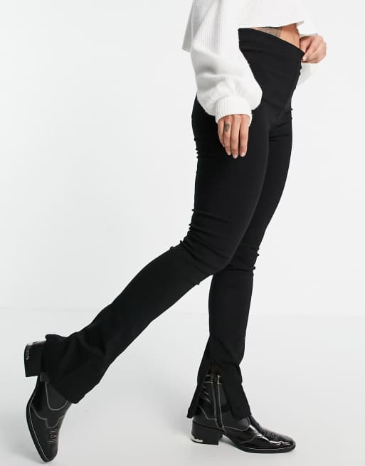 ASOS DESIGN bengaline trouser with zip split hem in black