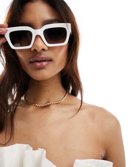 ASOS DESIGN bevel square sunglasses in white