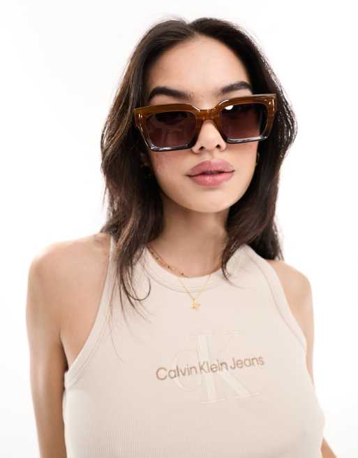 ASOS DESIGN beveled square sunglasses in crystal brown