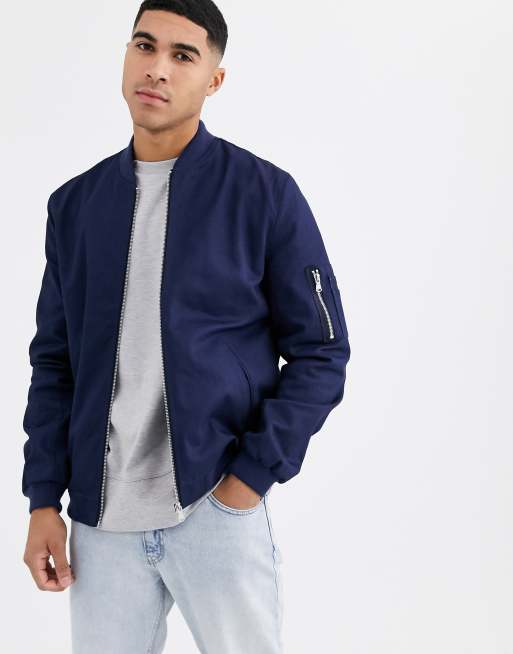 ASOS DESIGN bomber jacket with MA1 pocket in navy