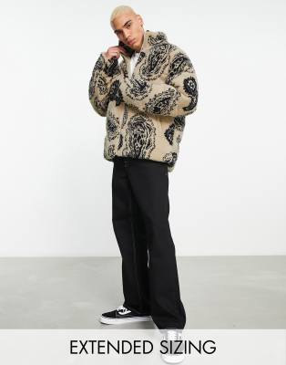 ASOS DESIGN borg puffer jacket in paisley print in stone